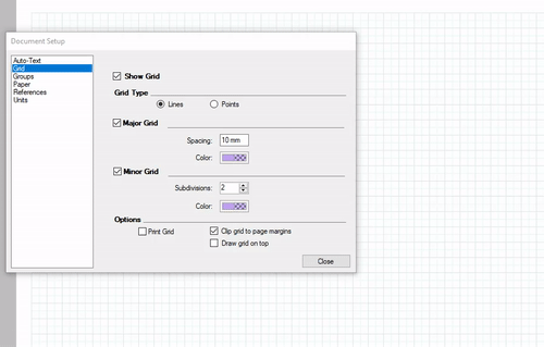 We shall choose “A3 Landscape”, since I have chosen the default with Grids we will have them on our Sheet. Contextual menu will give us access to Hide / Show the Grid. We can also configure the Grids and make more interesting settings, go to “File” select “Document Setup”